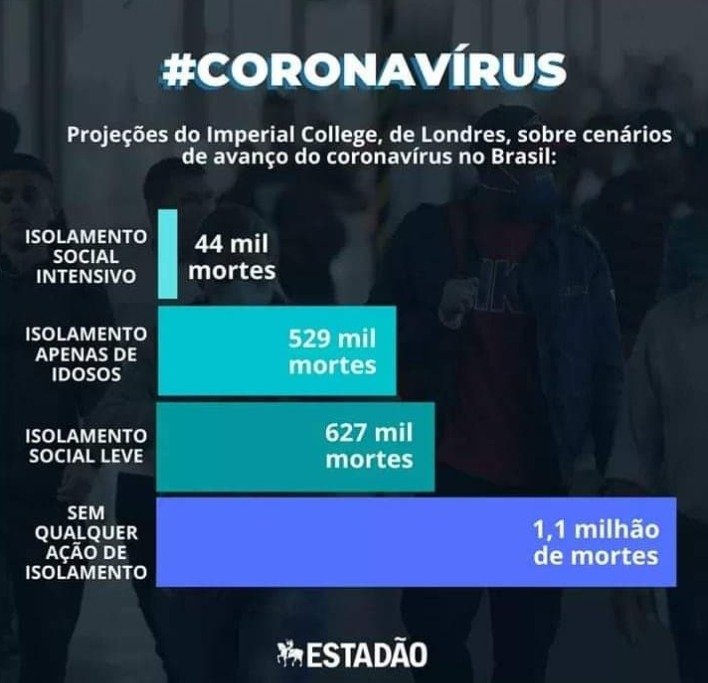 Não podemos disperdiçar mais tempo, o preço cobrado em vidas será muito alto , mas o intervalo variável , dependendo do cenário projetado, podendo ser de 40 mil até um milhão …que morrerão como peixes fora d ‘ água.